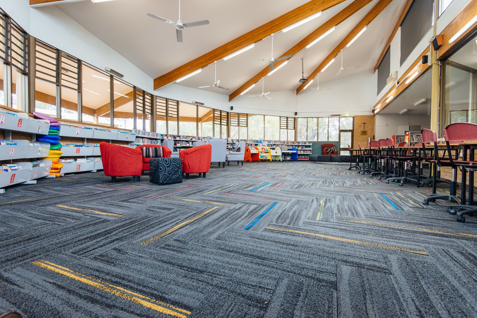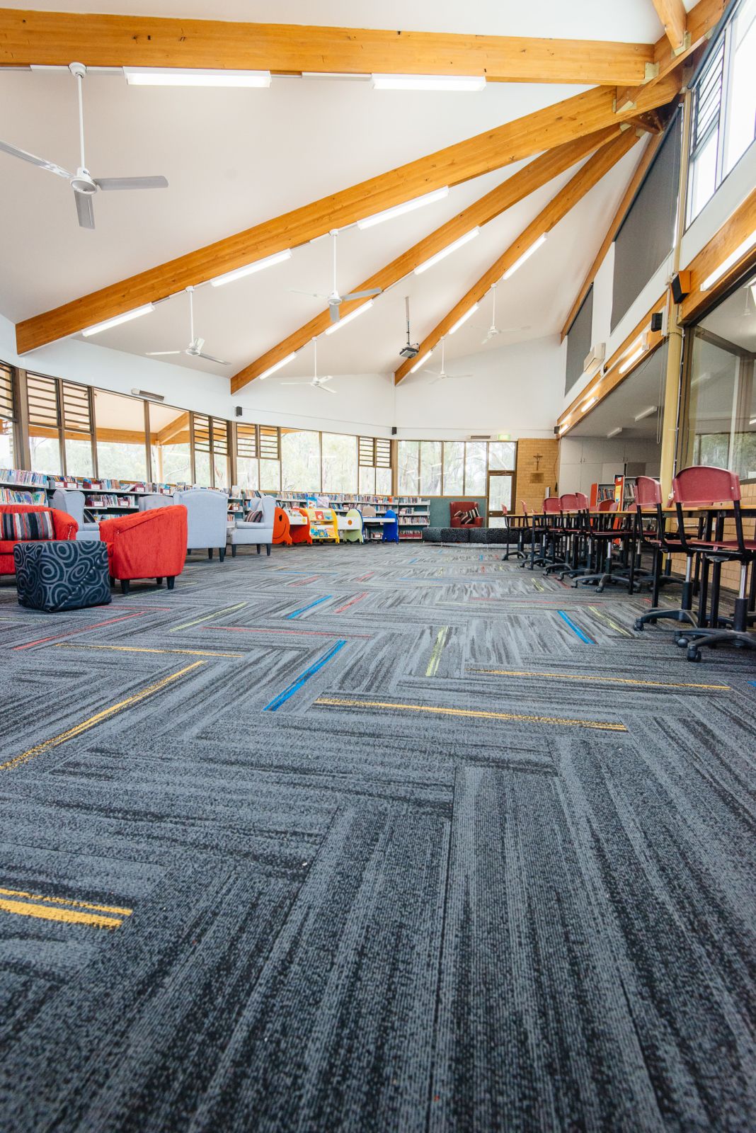 This well renowned private school in Sydney wanted to renovate their library with something that would suit the design parameters of their school and meet the requirements of an education facility. The use of colour was extremely important to them and the Inspired Floorcoverings austral lights range met their brief.